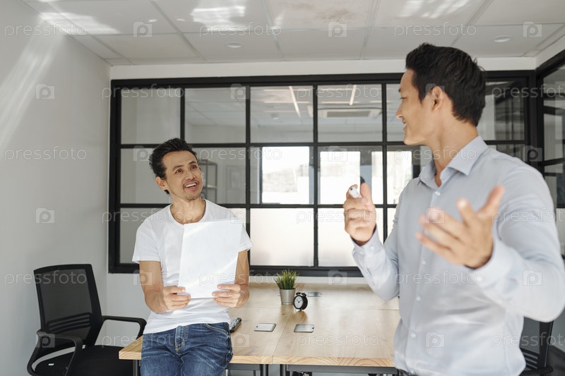 Деловая женщина отвечает на вопрос коллеги