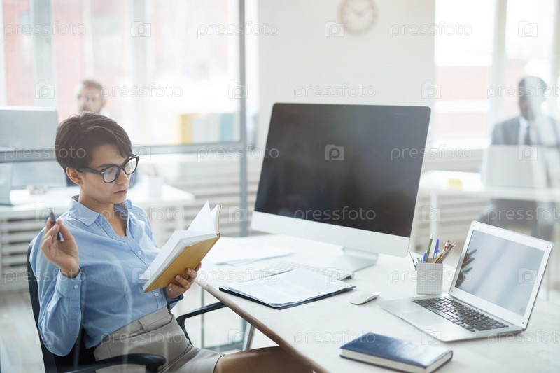 Современная молодая женщина отдыхает на рабочем месте