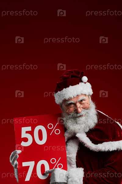 Знак Holding Sale Sign на красном Санта