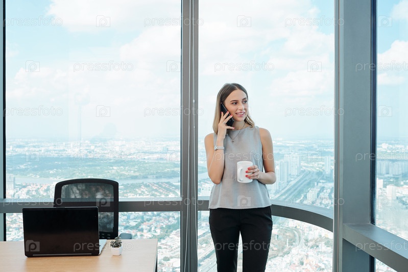 Улыбающаяся деловая женщина, разговаривающая по телефону