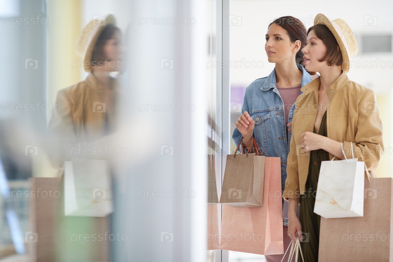 Молодые женщины выбирают одежду