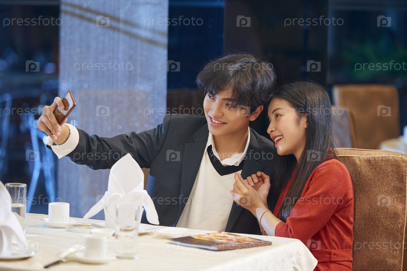 Счастливая пара, делающая селфи