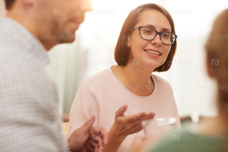 Женщина разговаривает со своей семьей