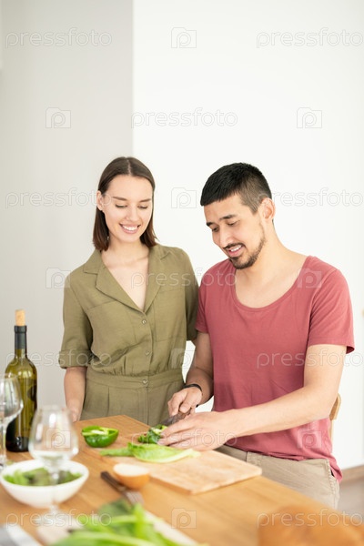 Муж готовит салат