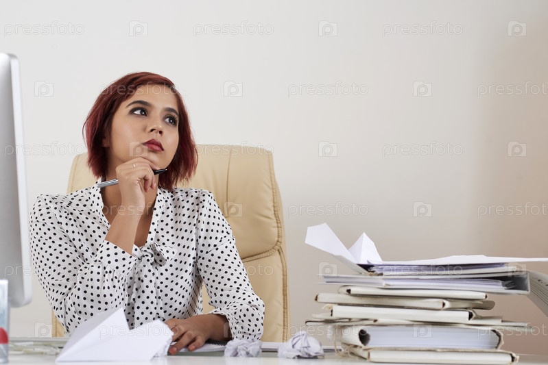 Женщина, размышляющая о бизнес-плане