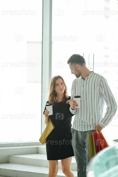 Влюбленная пара гуляет по торговому центру