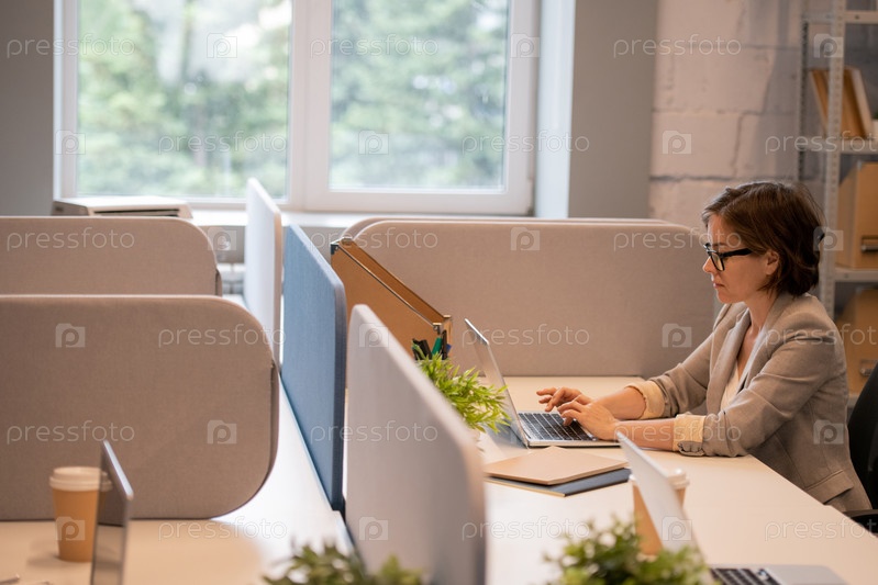 Концентрированный маркетолог, работающий над рекламной кампанией
