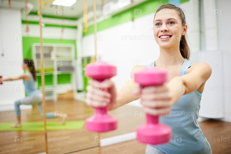 Улыбающаяся женщина тренируется