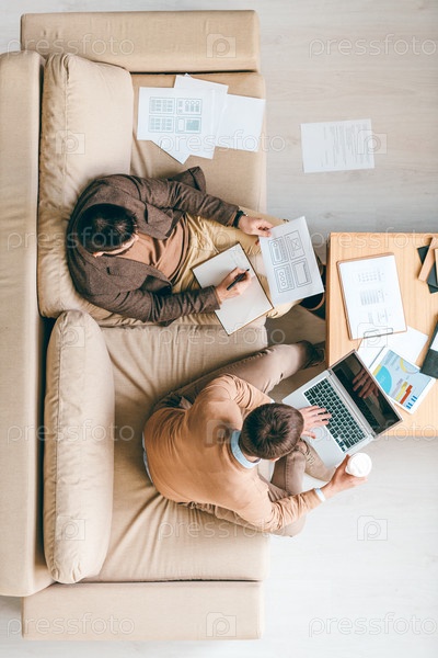 Вид на двух молодых креативных дизайнеров программного обеспечения, работающих над новым интерфейсом веб-сайта