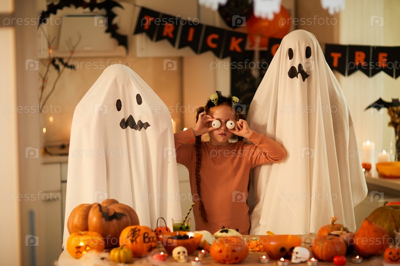 Девушка с призраками на вечеринке Хэллоуина