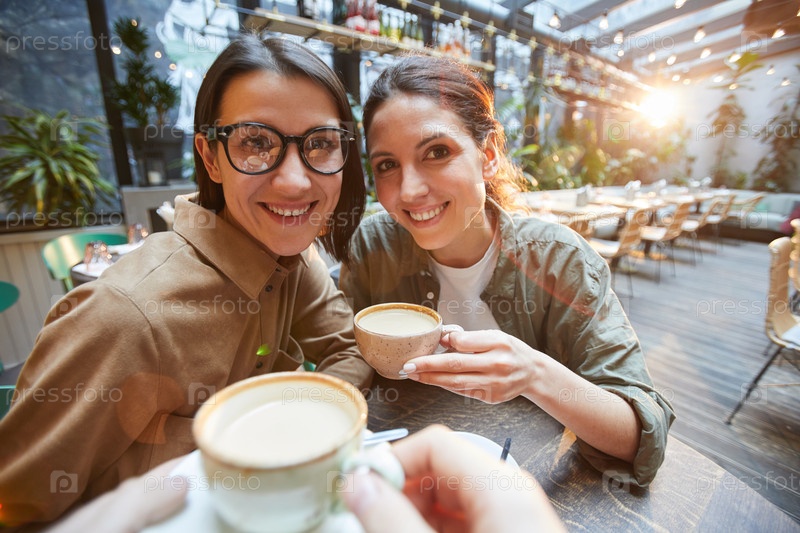 Друзья болтают за кофе