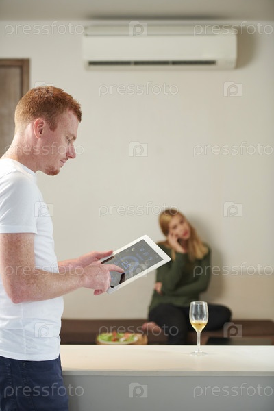 Мужчина, использующий приложение для умного дома