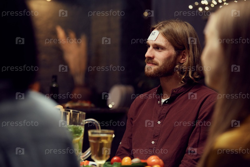 Современный мужчина играет в гадательную игру на вечеринке