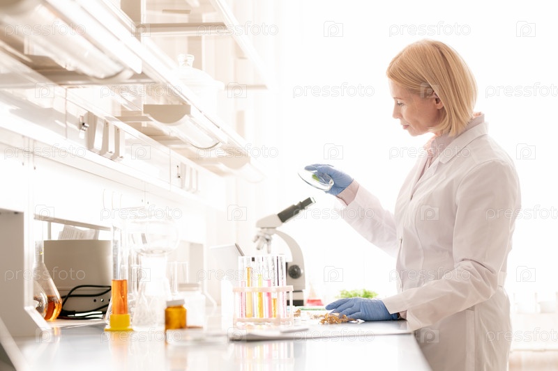 Современная леди исследует образец