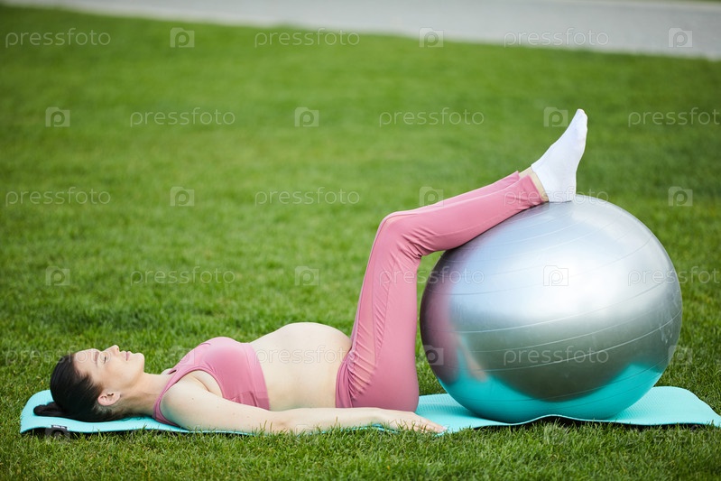 Беременная женщина занимается с мячом
