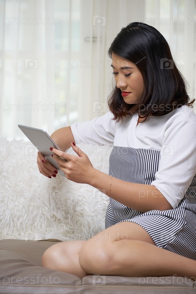 Женщина, работающая онлайн на планшетном компьютере