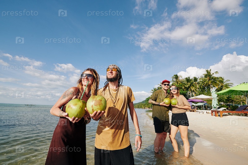 Пары, наслаждающиеся закатом на пляже
