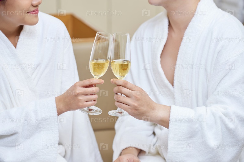 Пара с шампанским в оздоровительном центре