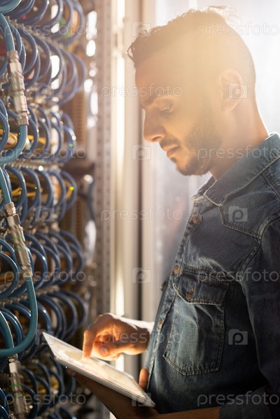 Серьезный ИТ-инженер просматривает результаты тестов