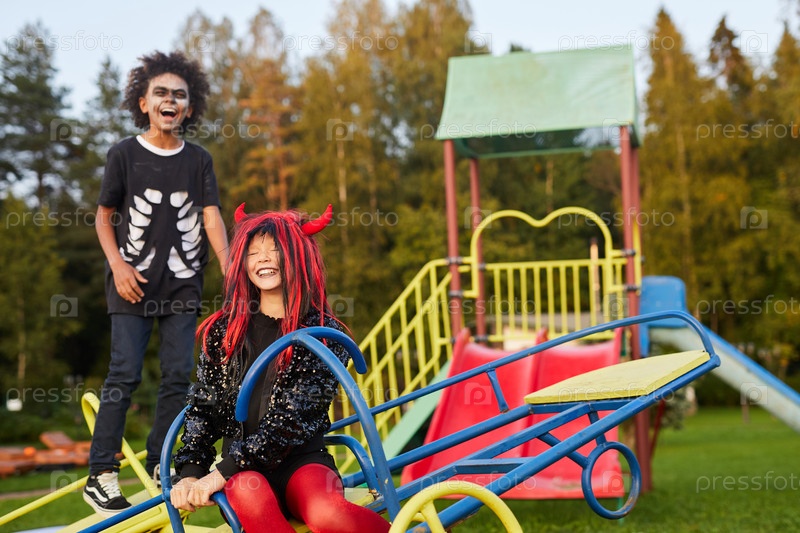 Дети Хэллоуина на игровой площадке