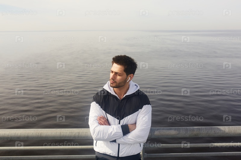 Спортсмен по берегу воды