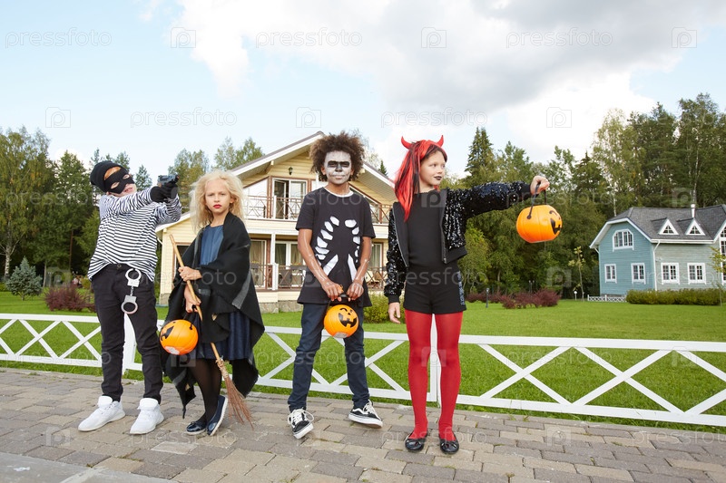 Группа детей, наслаждающихся Хэллоуином