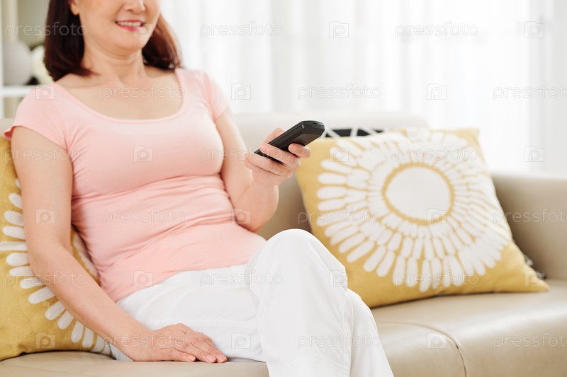 Женщина смотрит телевизор дома