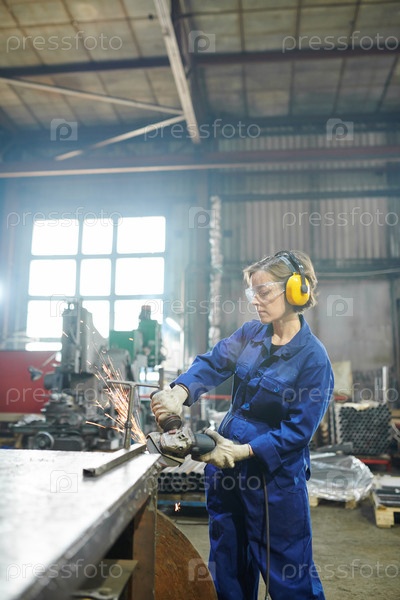 Женщина, режущая металл