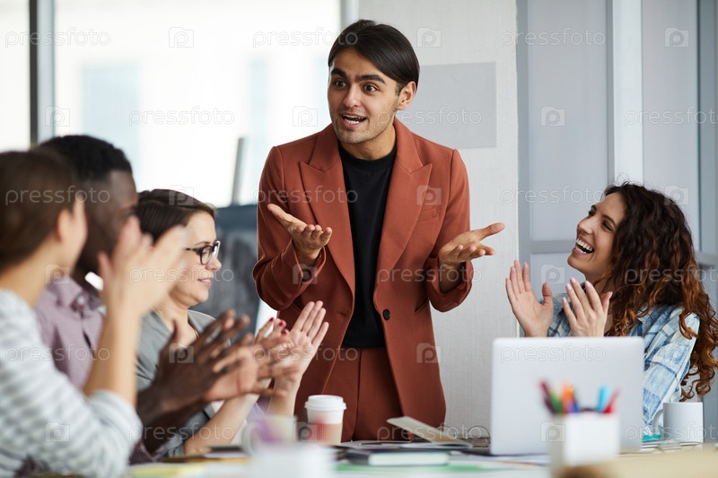 Ближневосточный бизнесмен дает мотивационную речь на встрече