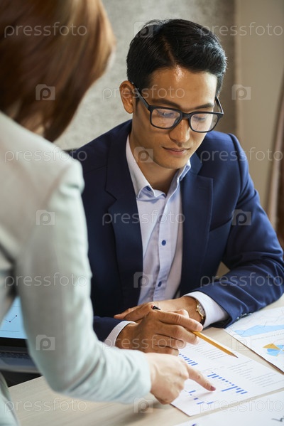 Деловая женщина показывает отчет коллеге