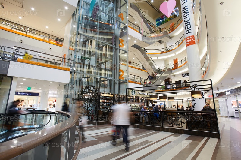 Современный торговый центр с спешащими людьми