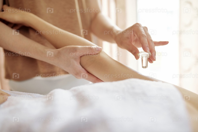Массажист, наносящий масло для тела