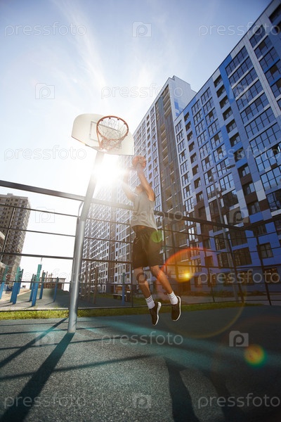 Баскетболист прыгает на солнце