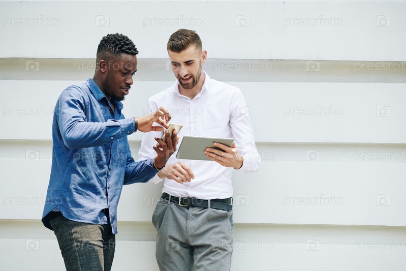Бизнесмен показывает мобильное приложение коллеге