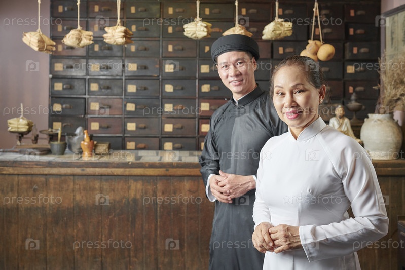 Мужчина и женщина, работающие в старой аптеке