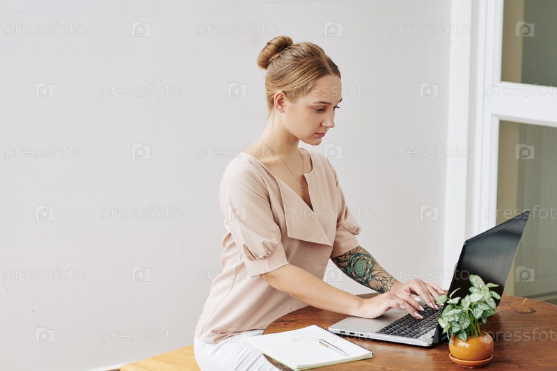 Студентка, работающая на ноутбуке