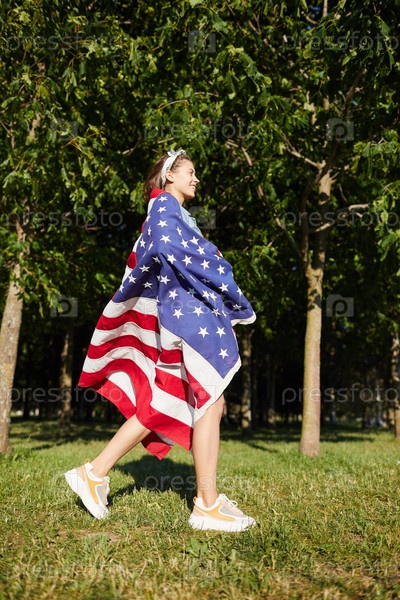Девушка, завернутая в американский флаг