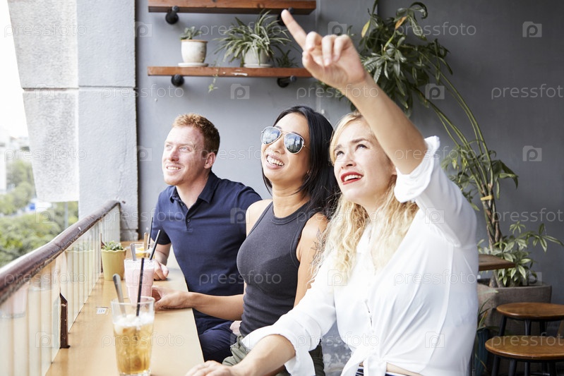 Веселые друзья отдыхают в кафе