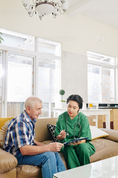 Медсестра посещает пожилого пациента дома