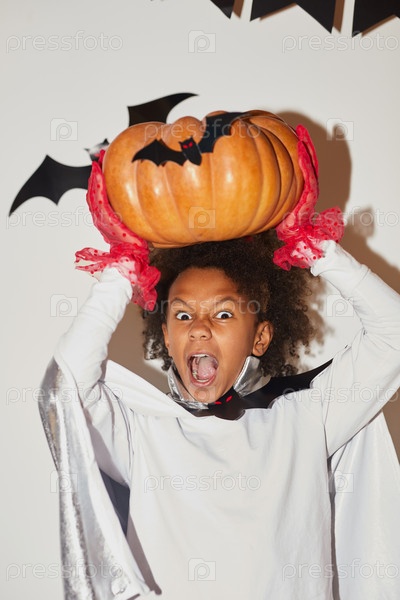 Эмоциональный африканский мальчик с тыквой
