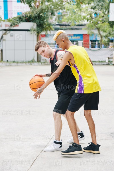 Молодые люди играют в баскетбол