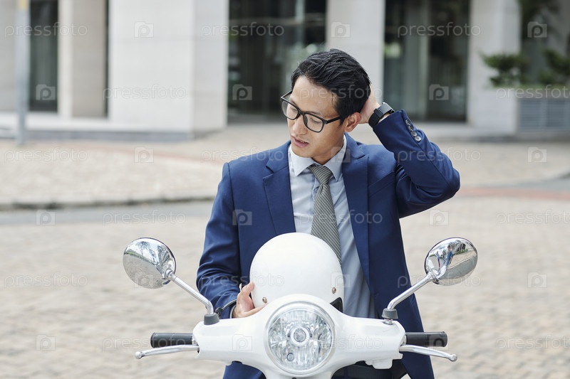 Бизнесмен снимает шлем