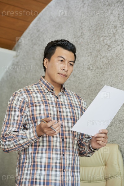 Бизнесмен читает документ с речью