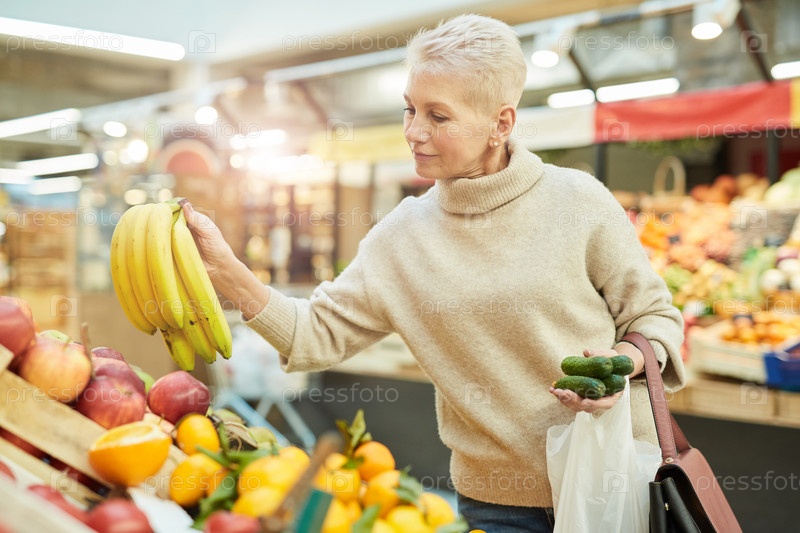 Старшая женщина, которая покупает продукты на фермерском рынке