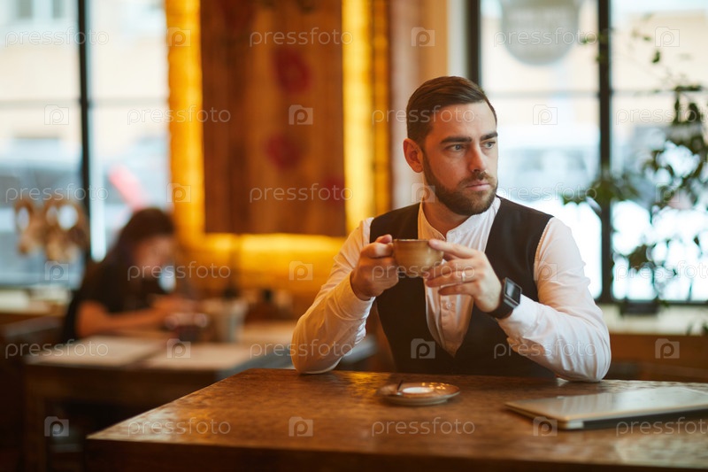 Бизнесмен в кафе на кофейном перерыве