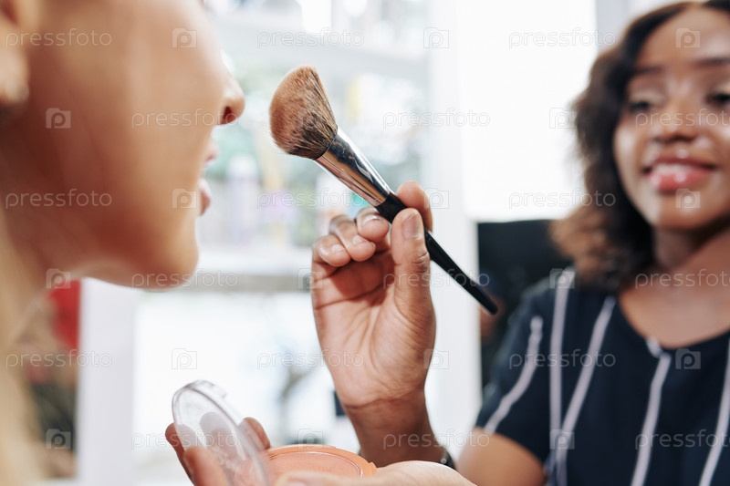 Макияж-художник наносит порошковый бронзер
