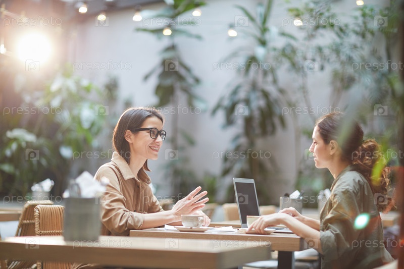 Современные женщины наслаждаются обедом в кафе