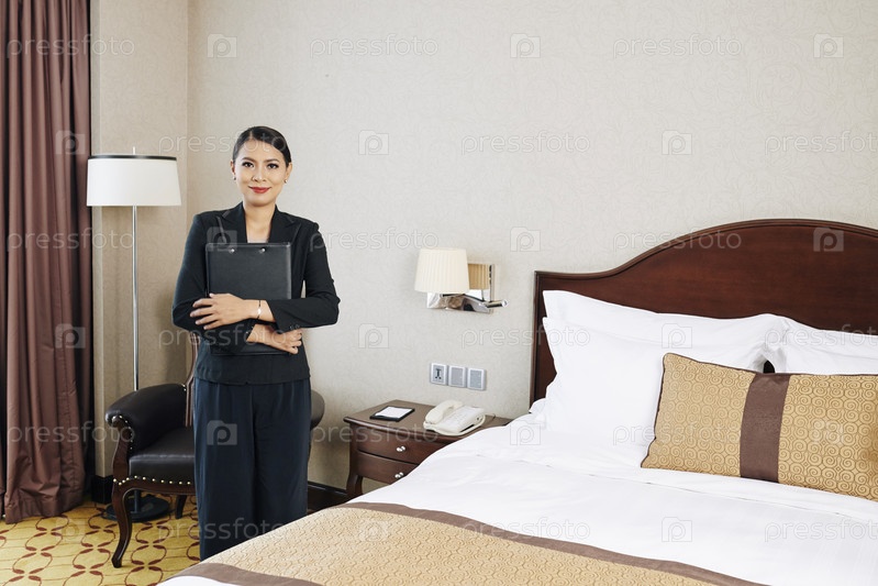Менеджер стоит у гостиничного номера