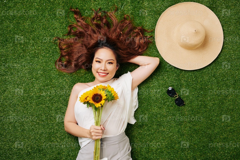 Женщина, отдыхающая на траве