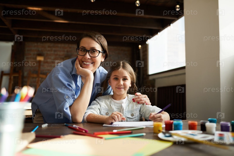 Мать и дочь позируют дома